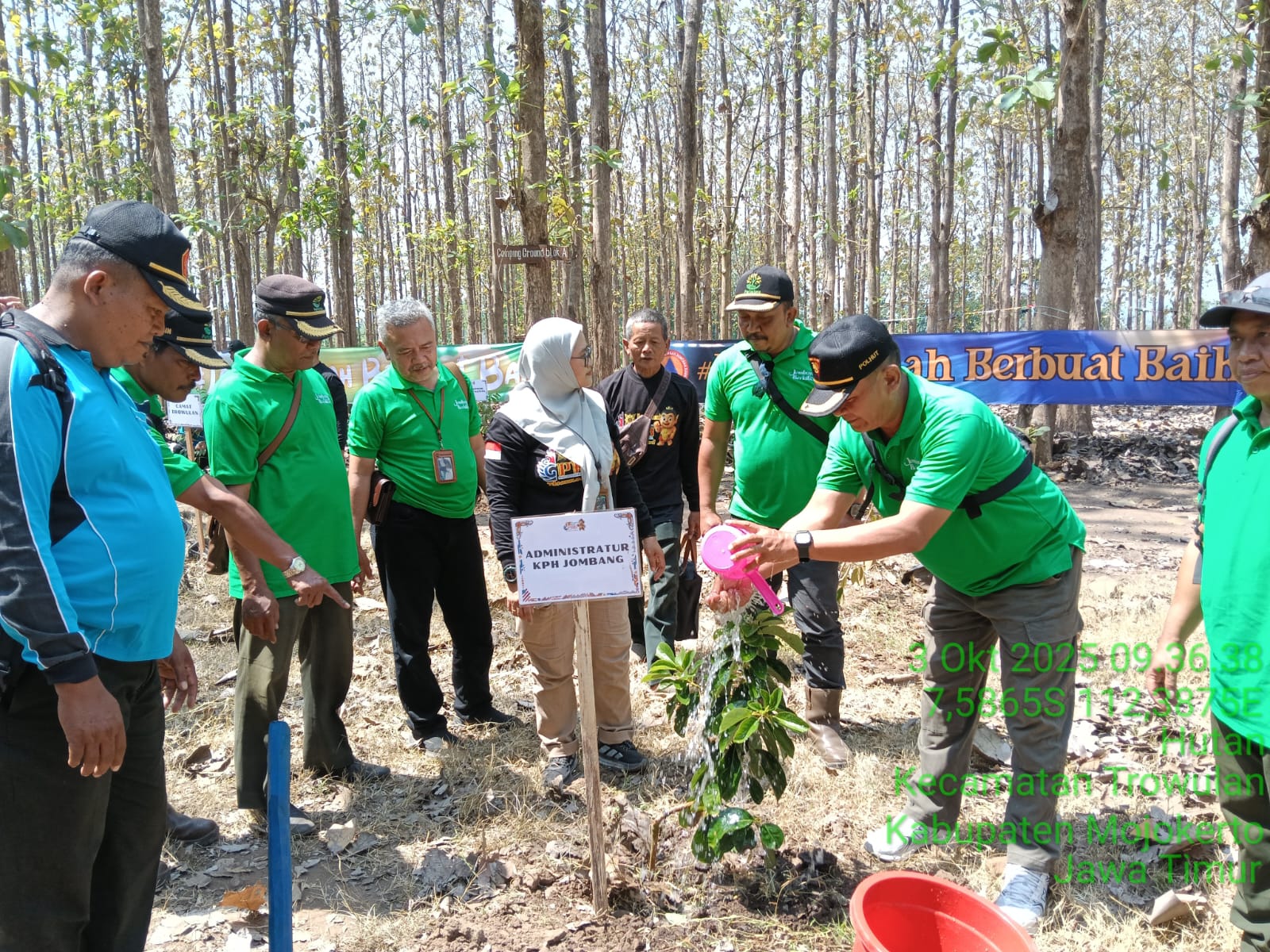 JOMBANG, | Perhutani Kesatuan Pemangkuan Hutan (KPH) Jombang sinergi bersama BPBD (Badan Penanggulangan Bencana Daerah) Provinsi Jatim, gelar penanaman sebagai upaya Pengurangan Risiko Bencana (PRB,) bertema “Dari Leluhur Untuk Alam Lestari”, dalam rangka memperingati Bulan “Pengurangan Resiko Bencana (PRB) tahun 2025”,bertempat di wisata alam rintisan Bumi Kepakisan, petak 45 M, Resort Pemangkuan Hutan (RPH) Kedung lumpang, Bagian Kesatuan Pemangkuan Hutan (BKPH) Jabung, yang secara adminiftratif masuk Desa Pakis, Kecamatan Trowulan, Kabupaten Mojokerto, Jumat (03/10).